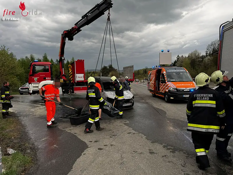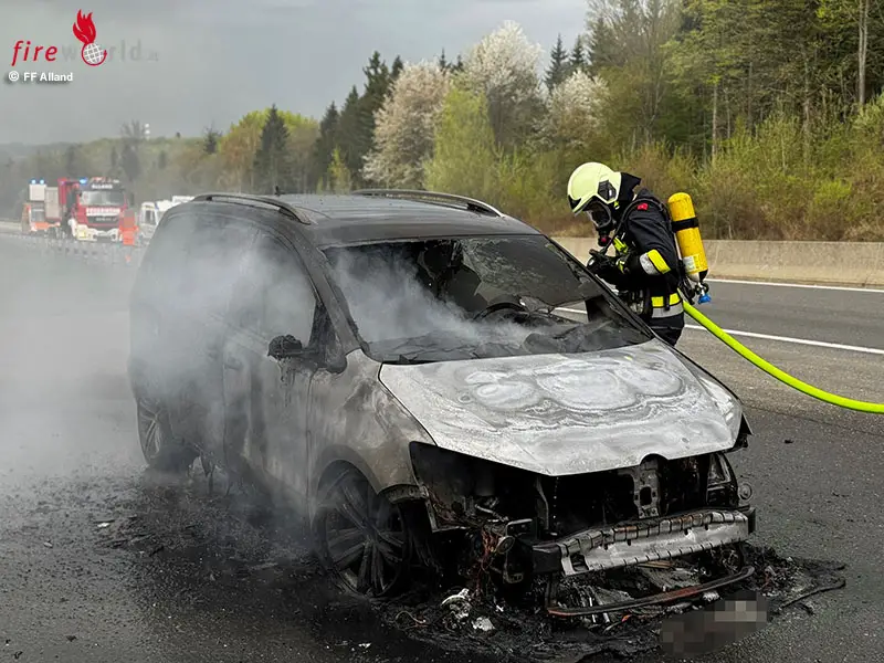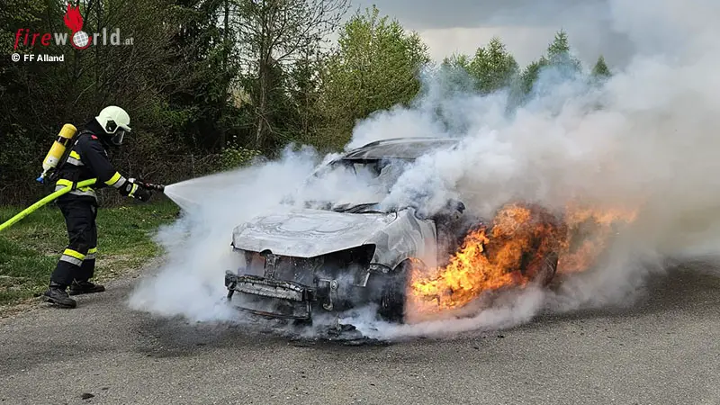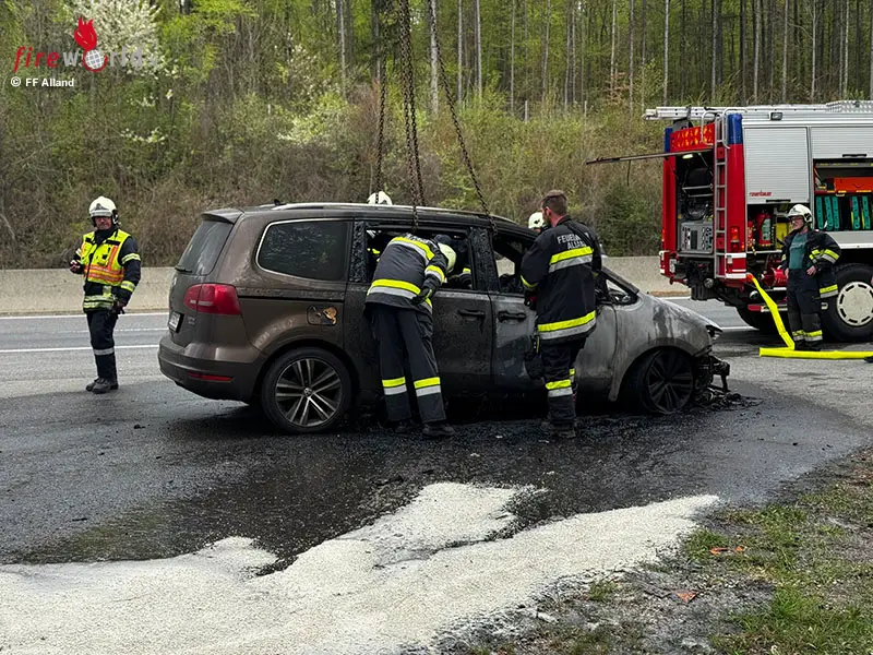 ALLAND (NÖ): Am 19. April 2026 wurde die Freiwillige Feuerwehr Alland gegen 14:30 Uhr zu einem Pkw-Brand auf die A21 in Fahrtrichtung A1 alarmiert.