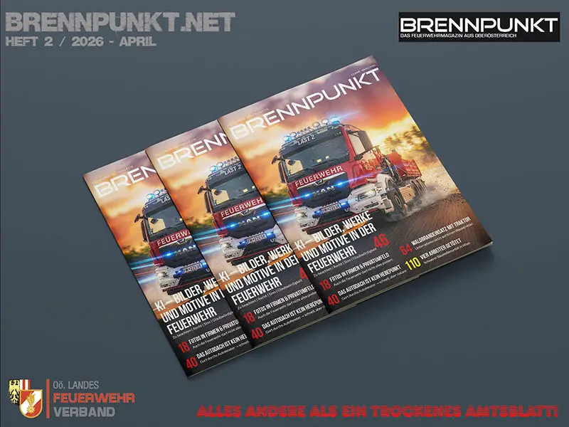 Mit einem Umfang von 116 Seiten und einem Doppelposter erschien die Ausgabe 2 / 2026 (März / April) des Brennpunkt, dem Magazin des Landes-Feuerwehrverbandes Oberösterreich. Im Anschluss ein Überblick über das Heft.