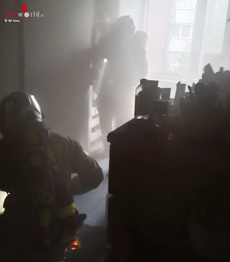 GRAZ (STMK): Die Berufsfeuerwehr Graz wurde um 12:25 Uhr des 21. April 2026 zu einem Zimmerbrand in die Steyrergasse alarmiert.