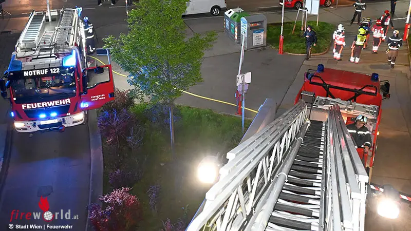 Die Wiener Berufsfeuerwehr stand mit 29 Kräften und sieben Fahrzeugen von 20.15 Uhr bis 22.15 Uhr im Einsatz.