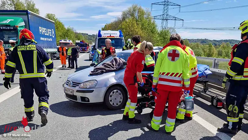Ein Pkw-Lenker leitete aus bislang ungeklärter Ursache kurz vor der Auffahrt ein Wendemanöver ein. Ein nachfolgender Lkw konnte nicht mehr rechtzeitig reagieren und prallte in die Seite des Fahrzeugs. Der Pkw-Lenker wurde dabei unbestimmten Grades verletzt und im Fahrzeug eingeklemmt. Die Feuerwehr Markt Allhau rückte umgehend aus und befreite den Verletzten aus dem Wrack.