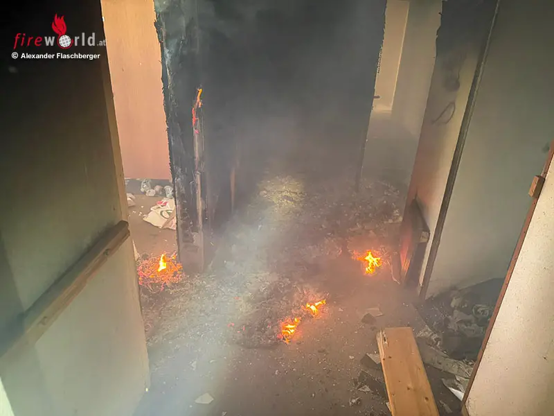 Zeitgleich wurden zur Unterstützung die Feuerwehr St. Martin in der Wart sowie die Drohne Süd aus Pinkafeld mitalarmiert. Der Innenangriff gestaltete sich aufgrund der Gegebenheiten im leerstehenden Objekt schwierig, da mehrere Türen gewaltsam geöffnet werden mussten, um zum Brandherd vorzudringen.