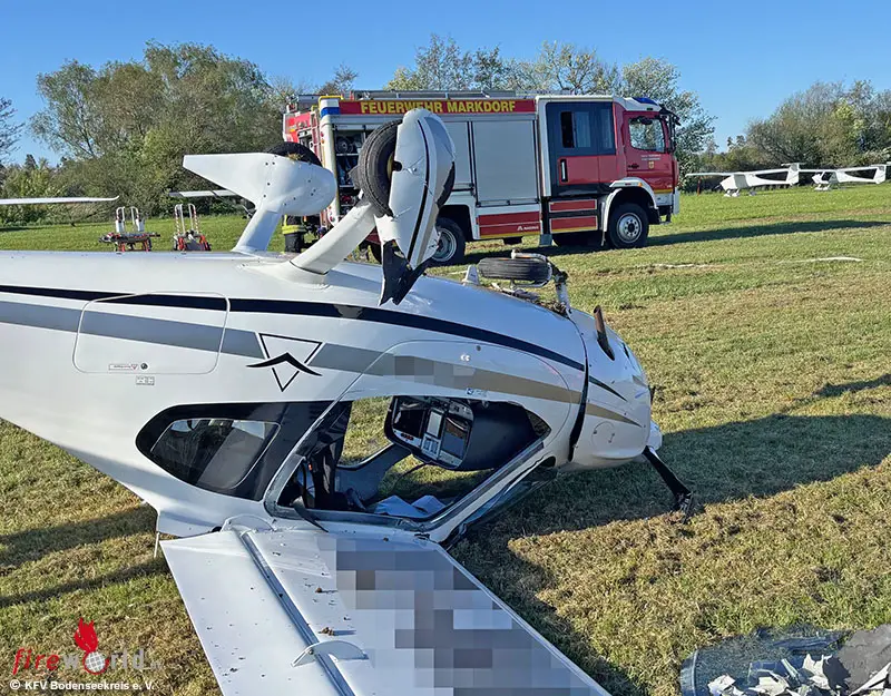 D: Ultraleichtflugzeug überschlägt sich am Flugplatz Markdorf