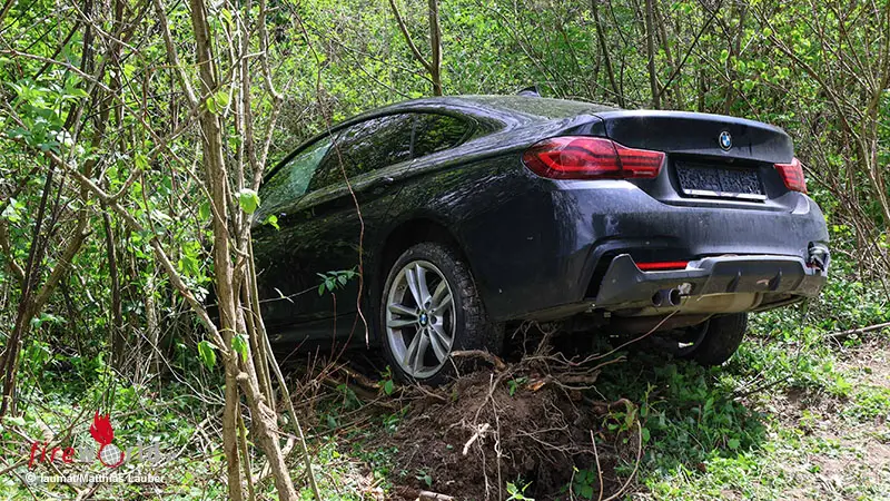 ST. MARIEN (OÖ): In St. Marien (Bezirk Linz-Land) ist Donnerstagmittag, 23. April 2026. ein Auto im Bereich einer sogenannten T-Kreuzung gerade aus über die Böschung in den Wald gefahren. Im Bachbett des Ipfbachs kam der Pkw dann zum Stehen.