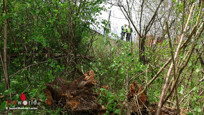 Die Einsatzkräfte zweier Feuerwehren wurden zur Personenrettung alarmiert. Die beiden Insassen des Pkw konnten sich zum Glück bis zum Eintreffen der Einsatzkräfte selbst befreien, sie wurden offenbar mit leichten Verletzungen ins Krankenhaus gebracht. In einer aufwändigeren Bergeaktion konnte der Unfallwagen vom Abschleppdienst dann zurück in die Reichweite des Krans gezogen und in weiterer Folge geborgen werden.