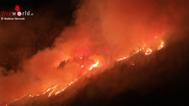 Um Mitternacht standen zwölf Feuerwehren aus dem Lesachtal, dem oberen Gailtal und aus Osttirol im Einsatz. Seitden Morgenstunden werden die Löscharbeiten von zwei Hubschraubern unterstützt.