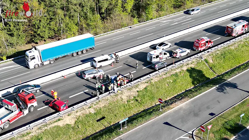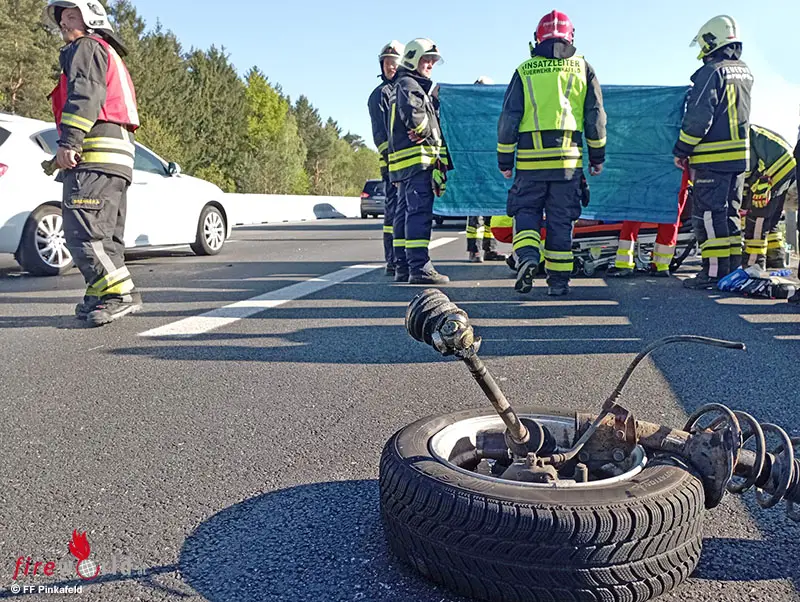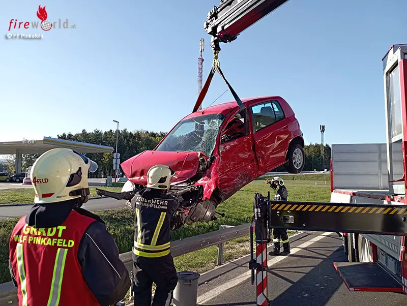 PINKAFELD (BGLD): Am Nachmittag des 24. April 2026 wurde die Freiw. Feuerwehr der Stadt Pinkafeld mittels Rufempfänger zu einem T2- Verkehrsunfall mit eingeklemmter Person auf der A2 (Südautobahn, Richtungsfahrbahn Graz kurz nach der Raststation Loipersdorf alarmiert.