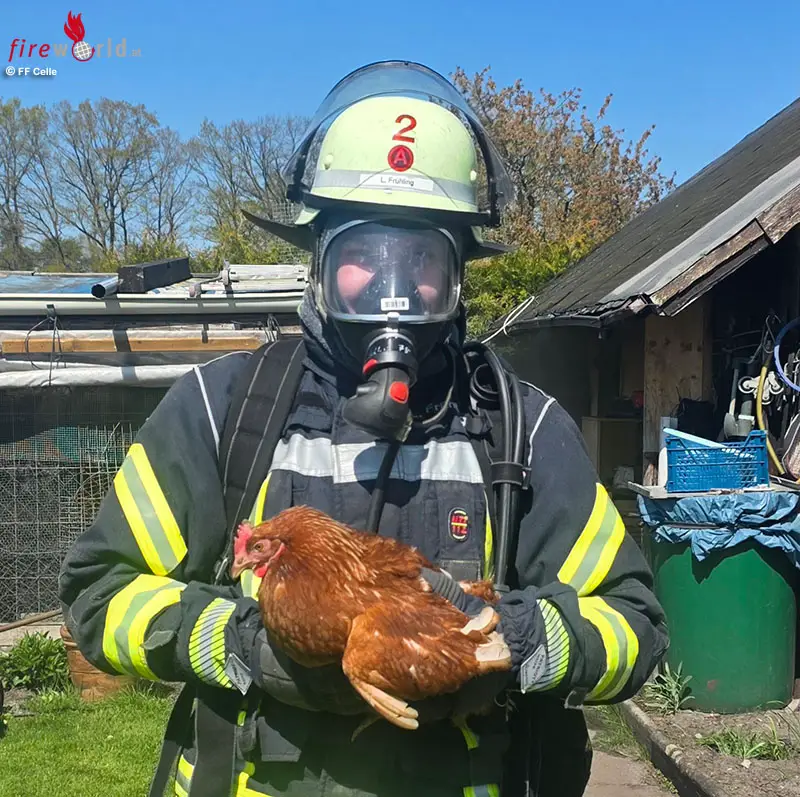 D: Mehrere Gartenlauben in Kleingartenkolonie in Celle durch Feuer zerstört → Hühner gerettet