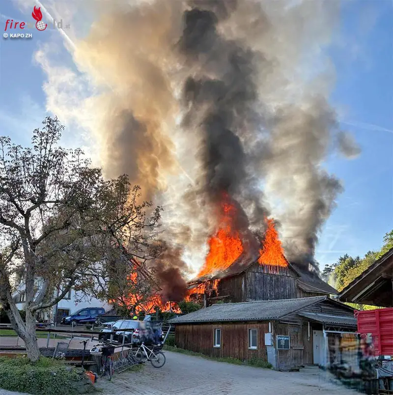 HOMBRECHTIKON (SCHWEIZ): Am Freitagabend, 24. April 2026, brach in einem Reithof in Hombrechtikon ein Brand aus, zehn Personen wurden verletzt, großer Sachschaden, Tiere blieben unverletzt.