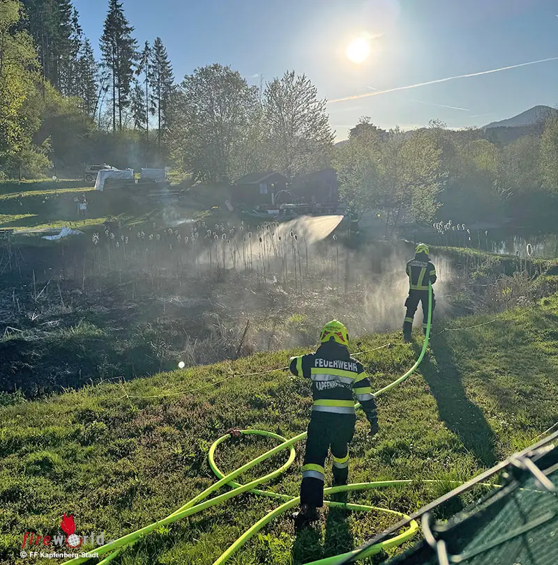 Eine Ausbreitung auf die Gartensiedlung, sowie auf den Wald konnte erfolgreich verhindert werden. Im Einsatz standen zwei Feuerwehren mit mehreren Fahrzeugen und die Polizei.