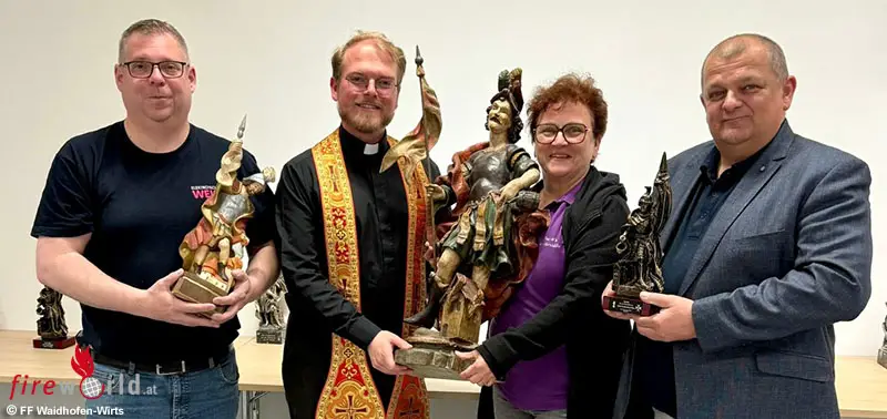 Ebenso war schon die große und sehr schöne Florianistatue für das neue Feuerwehrhaus Wirts unter den Segensgegenständen dabei, berichtet Kommandant Günther Weiss. Dieses neue Feuerwehrhaus wird am Sonntag, 21. Juni 2026, feierlich eröffnet. Um 10 Uhr wird dort die Festmesse mit Segnung des neuen Standortes stattfinden!