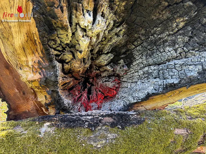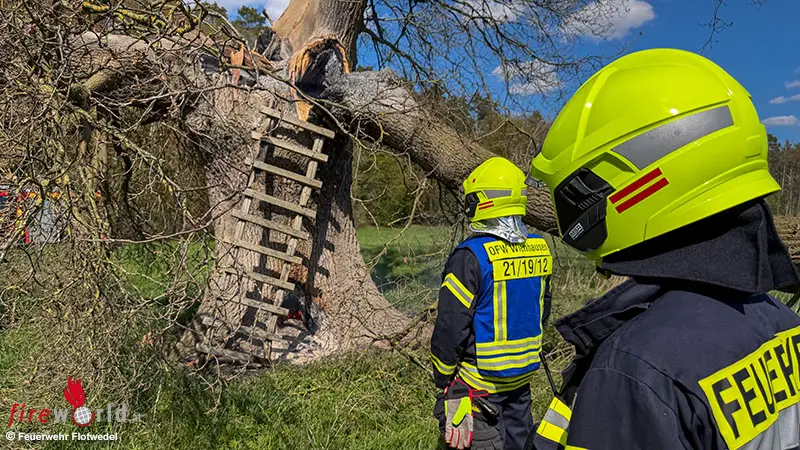 Ersten Erkenntnissen zufolge waren ein Hochsitz sowie eine mächtige Eiche in Brand geraten. Da der Baum bereits im Stamm und im Astwerk brannte, musste er unter Zuhilfenahme eines landwirtschaftlichen Fahrzeugs und einer Motorkettensäge so weit abgetragen werden, dass die Einsatzkräfte den Brandherd von innen heraus löschen konnten.