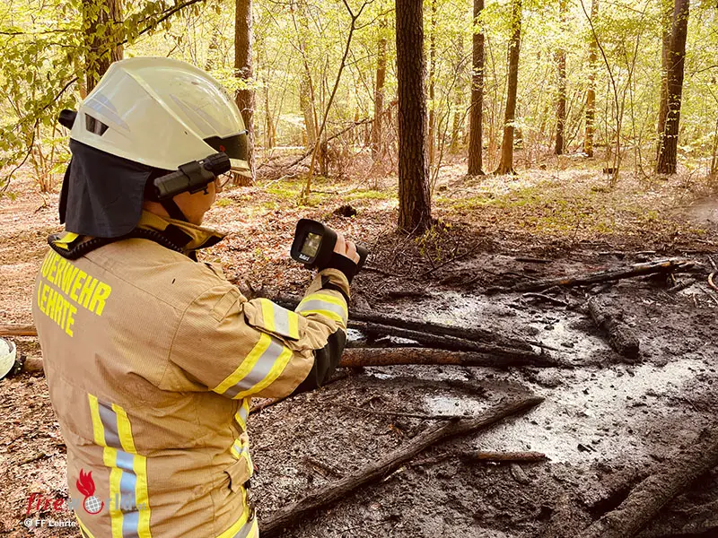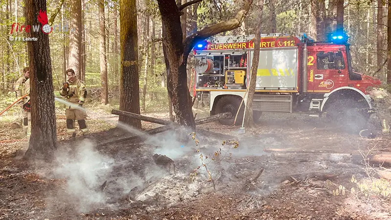 LEHRTE (DEUTSCHLAND): Am Montagvormittag, 27. April 2026, wurde die Feuerwehr Ahlten um 09:25 Uhr zu einem Feuer in das Ahltener Waldgebiet in der Nähe des Blauen See gerufen. Eine Spaziergängerin war dort mit ihrem Hund unterwegs und hatte eine Brandstelle mitten im Wald bemerkt.