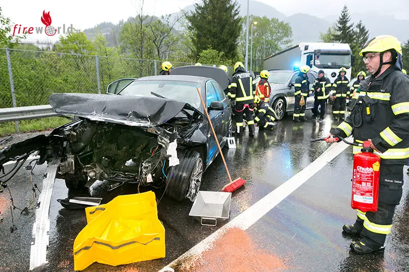 Die Airbags wurden ausgelöst. Zudem wurden die Leitschiene sowie ein Verkehrsschild erheblich beschädigt.Die A14 war in Fahrtrichtung Deutschland ab 19:00 Uhr zunächst vollständig gesperrt. In weiterer Folge konnte ein Fahrstreifen wieder freigegeben werden, der zweite Fahrstreifen blieb bis 22:08 Uhr gesperrt. Im Einsatz standen fünf Streifen der Polizei, der Polizeihubschrauber Libelle, 35 Einsatzkräfte der Feuerwehr mit fünf Fahrzeugen, zwei Rettungswagen sowie ein Notarzt. Die ASFINAG war mit einer Streife und einer Kehrmaschine an den Aufräumarbeiten beteiligt.