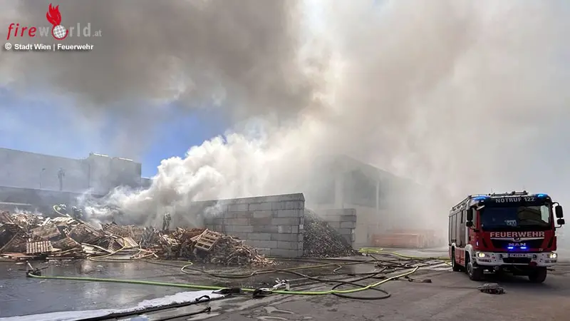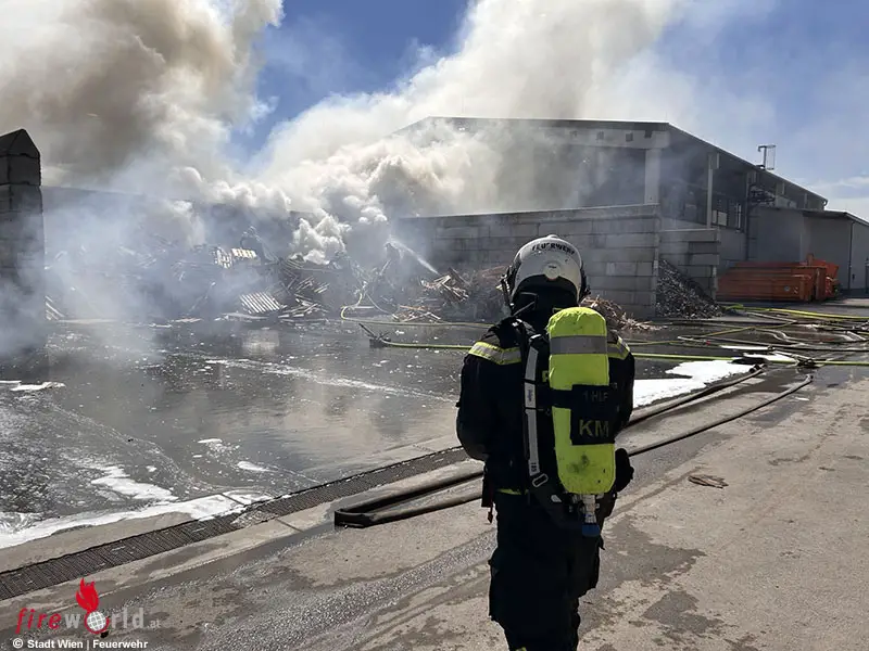 WIEN, 22. BEZIRK: Am Vormittag des 29. April 2026 geriet Sperrmüll auf einer Lagerfläche im Freien in Wien – Donaustadt am Gelände des ehemaligen Rinterzelts in Brand. Beim Eintreffen der Berufsfeuerwehr Wien wurden unverzüglich mehrere Löschleitungen unter Atemschutz vorgenommen, um eine Ausbreitung auf eine unmittelbar angrenzende Halle zu verhindern.