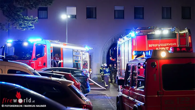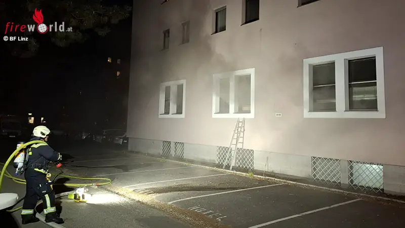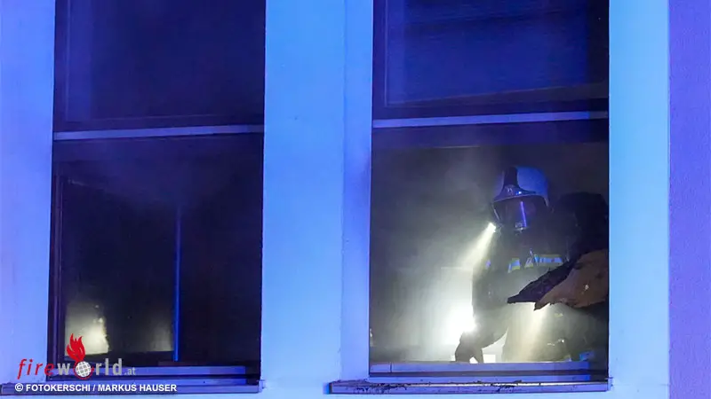 Beim Eintreffen der Feuerwehr drang dunkler Rauch aus mehreren gekippten Fenstern, dieser breitete sich auch in das Treppenhaus und teilweise in die Gänge aus. Der Brand konnte von einem Atemschutztrupp rasch lokalisiert werden.