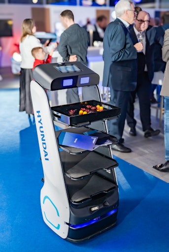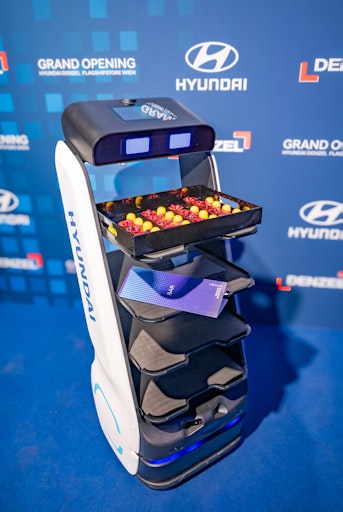 Autonomer Serviceassistent unterstützt bei der Eröffnung des neuen Hyundai Denzel Flagship Stores in Wien-Erdberg.