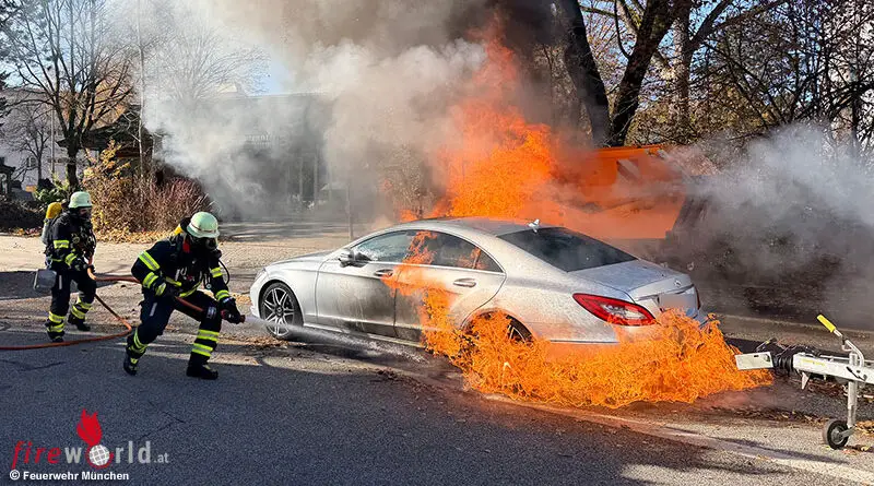 Bayern: Brennende Kehrmaschine in München → Brandausdehnung auf Pkw