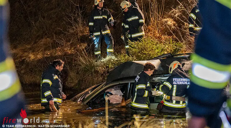 Oö: Auto landet bei Unfall in Helfenberg in Teich → zwei Verletzte (38, 39)
