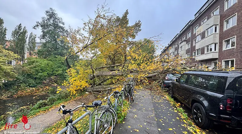 mehr lesen ...DÜSSELDORF (DEUTSCHLAND): Auf der Feuerbachstraße in Düsseldorf stürzte am Donnerstagnachmittag, 23. Oktober 2025, ein rund