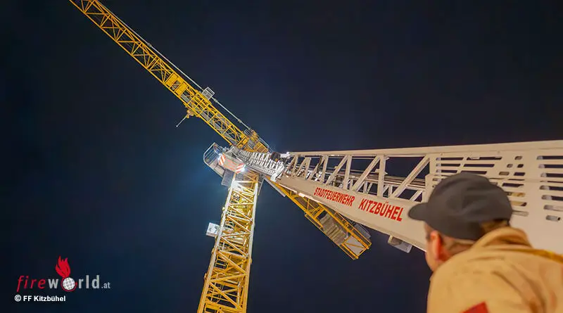 Tirol: Feuerwehr übt mit der Bergrettung die Personenrettung vom Turmdrehkran in Kitzbühel