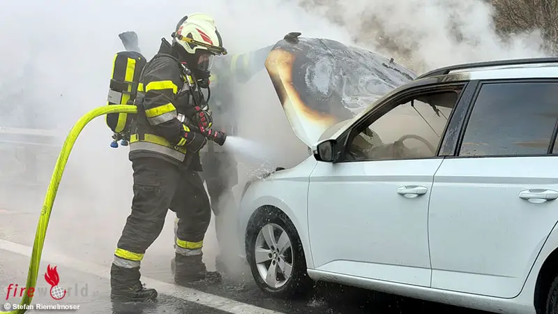 Stmk: Autobrand im Gegenverkehrsbereich der A 9 bei Mautern