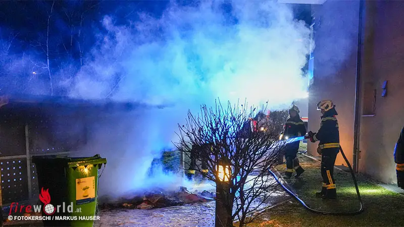 Nö: Garage zwischen Wohngebäuden in Dürnkrut in Vollbrand