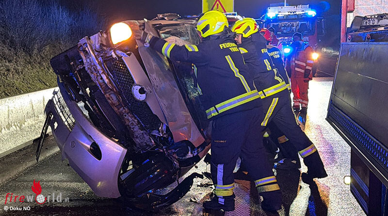 Nö: Überschlag nach Unfall mit zwei Pkw auf A 1 zwischen Melk und Loosdorf