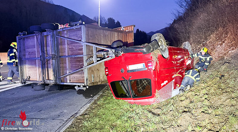 Oö: Kleinbus mit Jausenanhänger überschlägt sich auf A1
