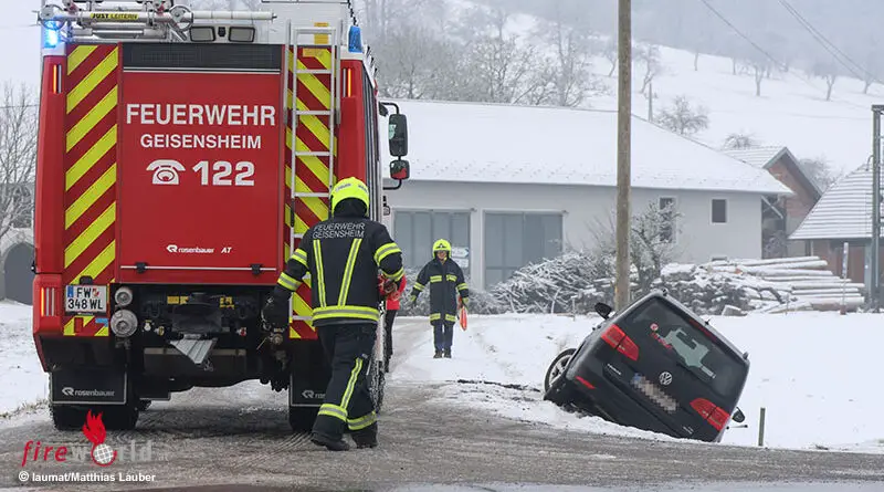 Oö: Personenrettungsalarm bei Auto in Schräglage in Pichl bei Wels