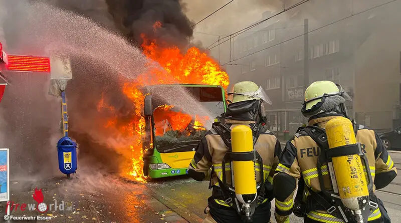 D: Linienbus in Essen lichterloh in Flammen