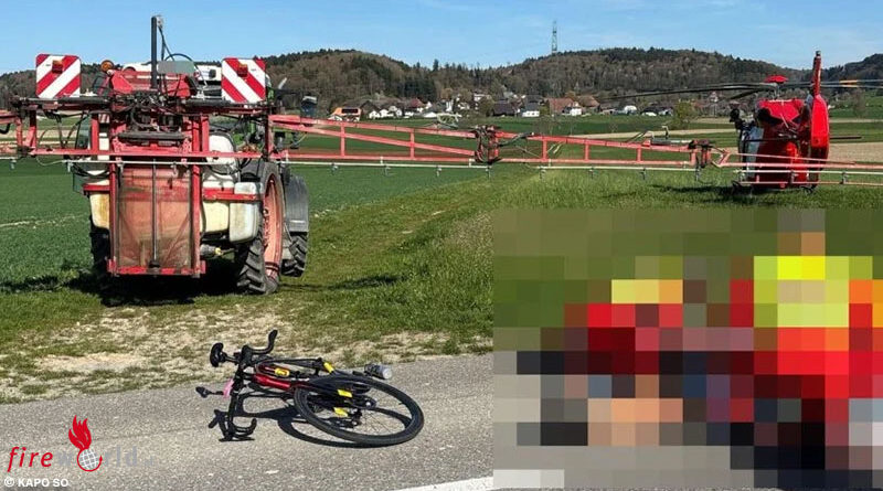 Schweiz: Fahrradfahrer (57) kollidiert mit ihn Fahrbahn ragende Pflanzenschutzmittelspritze und wird tödlich verletzt