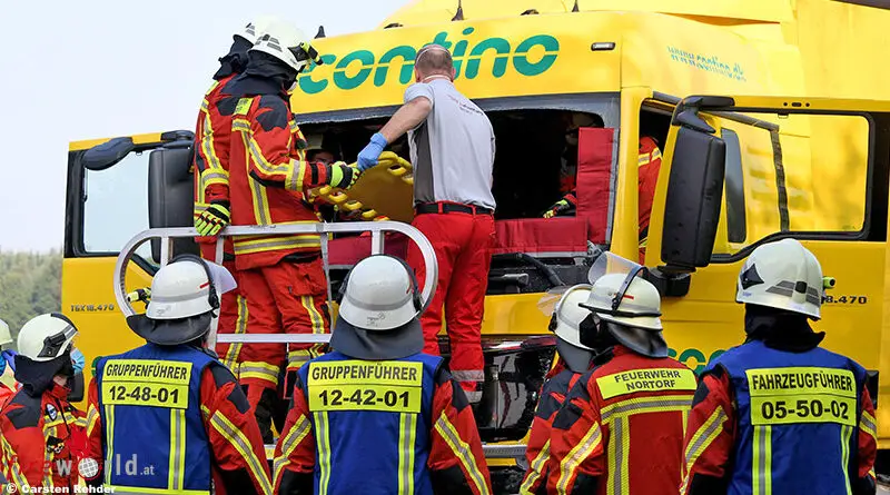 D: Jeep kracht in Eisendorf gegen Sattelschlepper: ein Toter, Lkw-Lenker eingeklemmt
