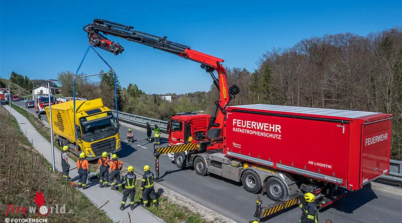 GRÜNBURG (OÖ): Ein festgefahrener Lastkraftwagen hat am Donnerstagnachmittag, 8. April 2026, einen Einsatz der Feuerwehr