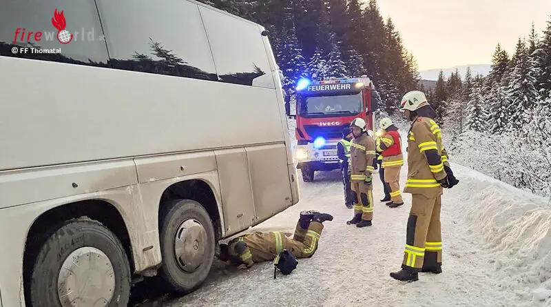 Sbg: Bergung eines feststeckenden Auttobusses in Thomatal