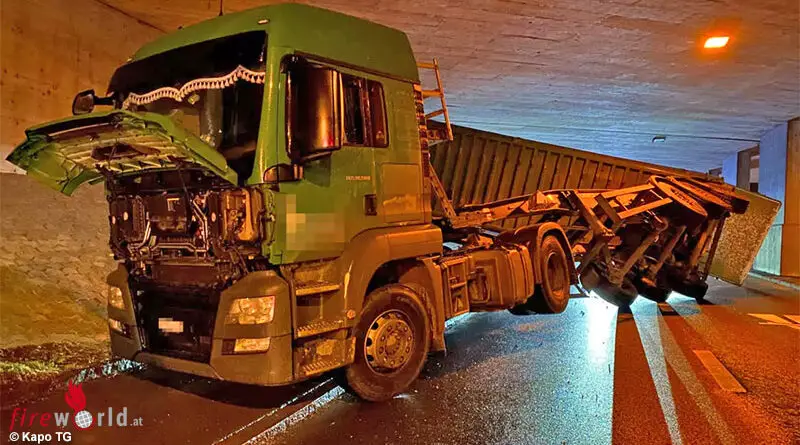mehr lesen ...FRAUENFELD (SCHWEIZ): Der Ladekran eines Lastwagens kollidierte am Montag, 29. November 2021, in Frauenfeld mit