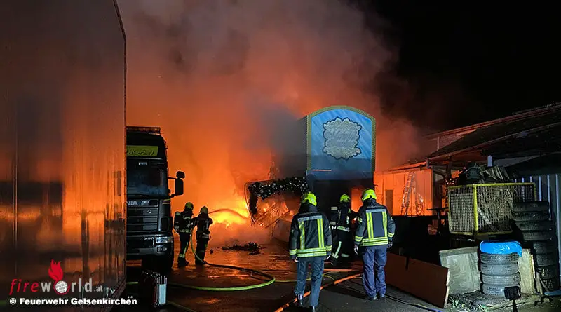 D: Brand zweier Verkaufsstände mit Feuersprung auf Lagerhalle bei Schaustellerbetrieb in Gelsenkirchen