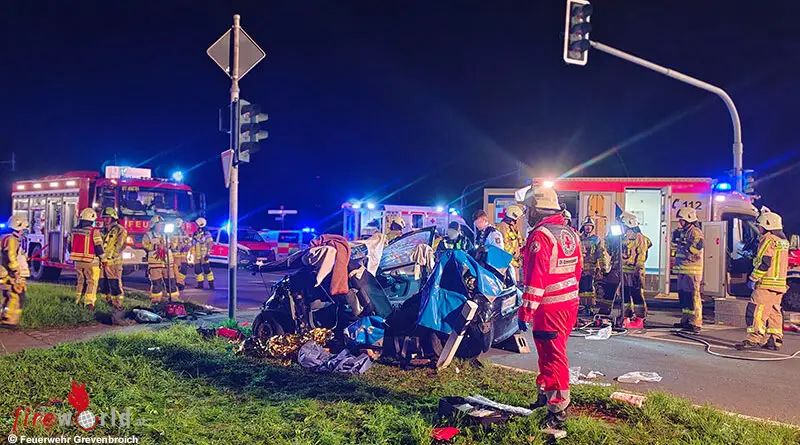 mehr lesen ...GREVENBROICH (DEUTSCHLAND): Bei einem schweren Verkehrsunfall zwischen einem Lkw und einem Kleinwagen wurden am späten