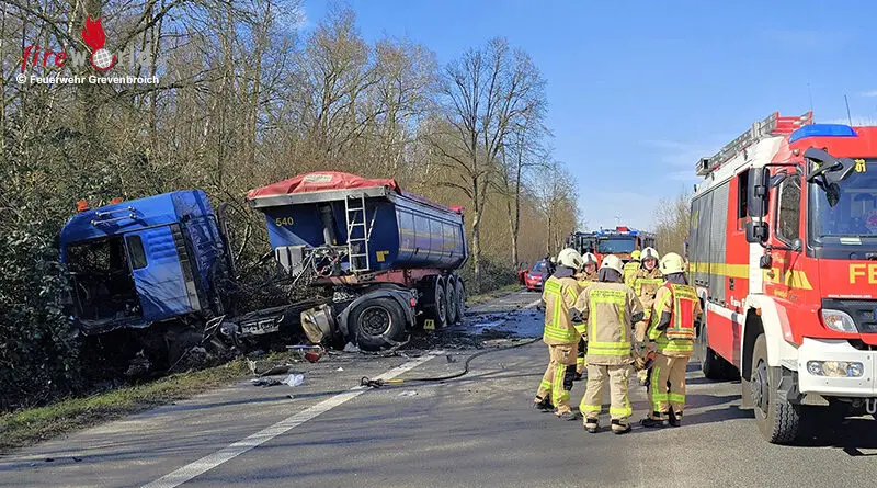 mehr lesen ...GREVENBROICH (DEUTSCHLAND): Ein schwerer Verkehrsunfall zwischen einem Pkw und einem Sattelschlepper bei Grevenbroich forderte am
