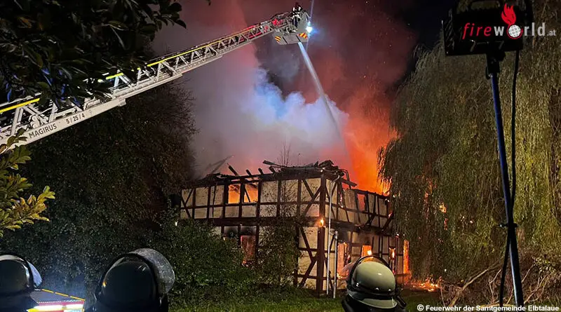 D: Über 200 Kräfte im Einsatz → Feuer zerstört Nebengebäude am Jagdschloss Göhrde