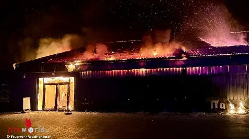 D: Vollbrand einer Trampolinhalle in der Nacht → Halle in Recklinghausen niedergerissen