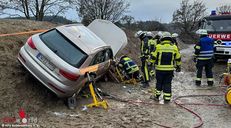 D: Feuerwehr befreit Unfall-Fahrerin bei Heiligenberg aus Zwangslage