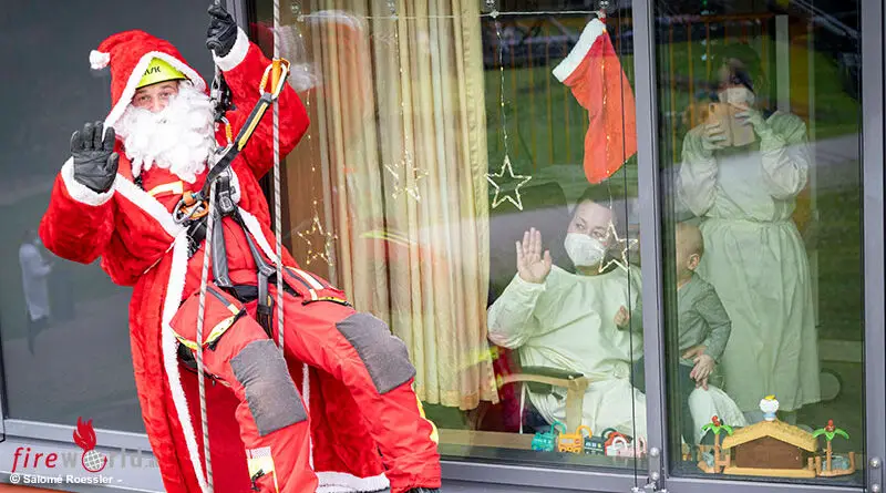 D: Frankfurter Höhenretter der Feuerwehr beglücken kleine Patienten zu Nikolaus