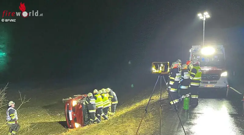 Stmk: Pkw rutscht trotz Schneeketten in Waldstück
