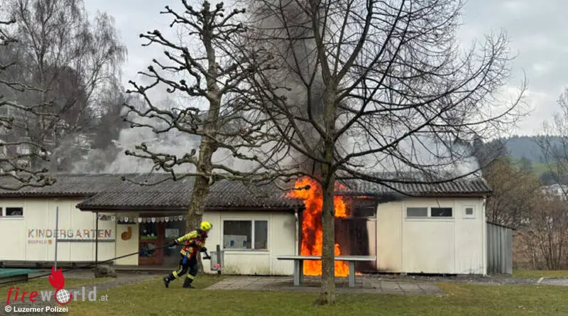 mehr lesen ...EGWEIL, LKR. EICHSTÄTT (BAYERN): Am Nachmittag des 9. Jänner 2025 brannte das Gebäude des Waldkindergartens