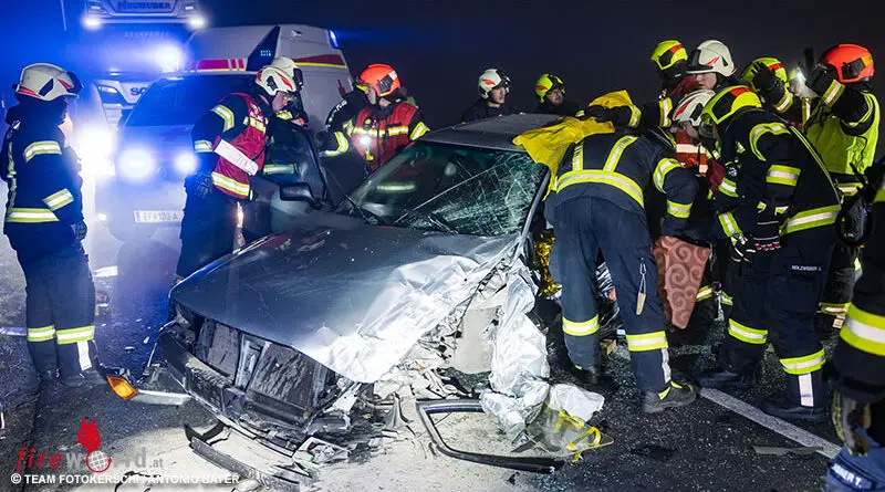 Oö: Eingeklemmte Person nach Streifkollision zwischen Transporter und Pkw auf Ruflinger Bezirksstraße in Wilhering