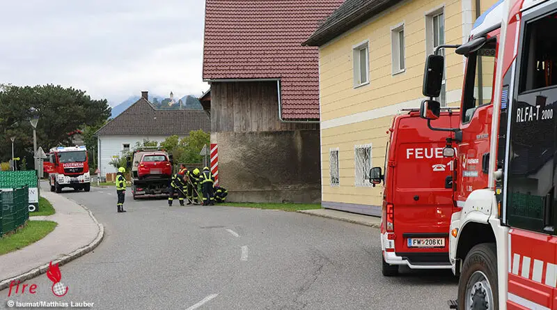 Oö: Auto gegen Gebäudeeck → vermeintlicher Brand in Micheldorf war Pkw-Unfall