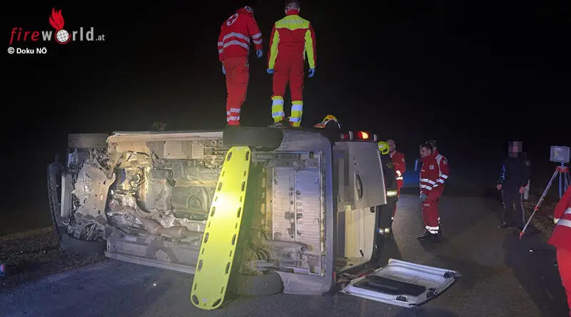 Nö: Kastenwagen-Unfall mit Menschenrettung auf Landstraße bei Purgstall → Lenker verletzt