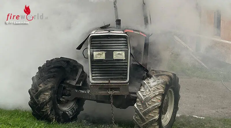Oö: Vollbrand eines Traktors auf Bauernhof in Laakirchen → Besitzer zieht Gefährt ins Freie