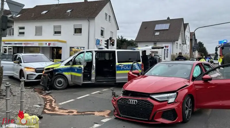 D: Vier Leichtverletzte bei Kreuzungsunfall während Einsatzfahrt der Polizei in Langen